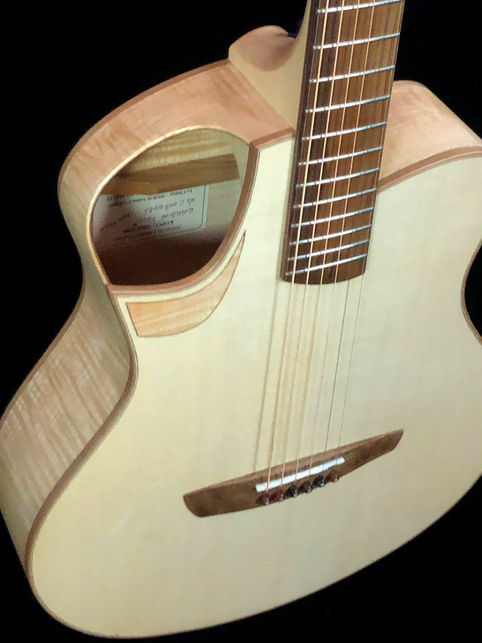 Le modèle Cardiff adapté aux cordes nylon, manche en 48mm (disponible entre 46 et 50mm à la demande ), avec chevalet et mécaniques classiques. Une version hybride est également réalisable sur commande.